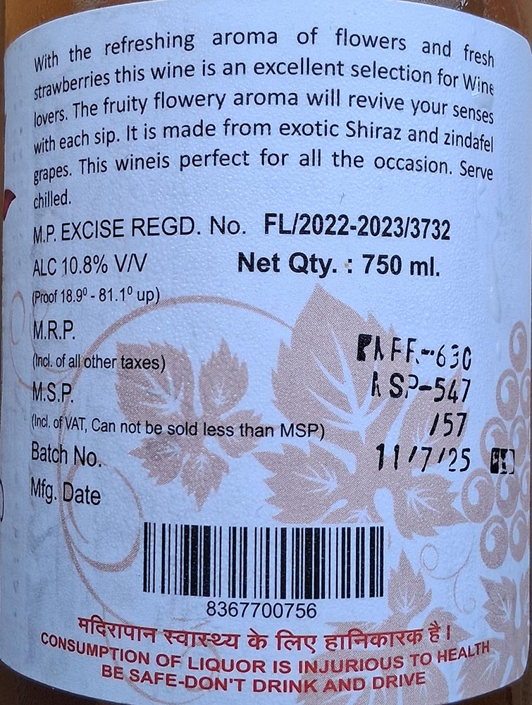 The bottle itself gives a curious layer to the experience. The label is attractive and the name certainly grabs attention. However, the choice to write Rose instead of Rosé already creates a small moment of confusion. The situation becomes even more amusing when a literal rose flower appears on the label, as if the wine cannot quite decide whether it refers to the color, the grape style, or the plant. Turning the bottle around does not improve matters. A few spelling mistakes on the back label make the presentation look careless and slightly unprofessional, which is unfortunate because the initial visual charm deserved better support